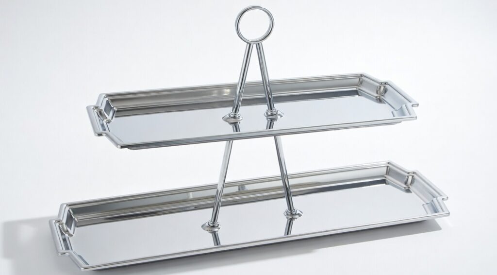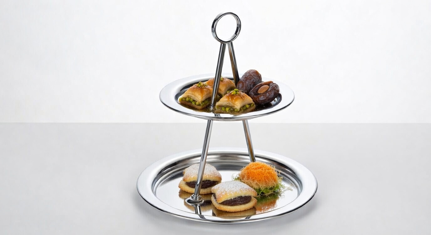 Manufactured in polished metal finishes with a clean, luxury feel—ideal for Middle East partners. Custom sizes, handles, tiers and branding available.